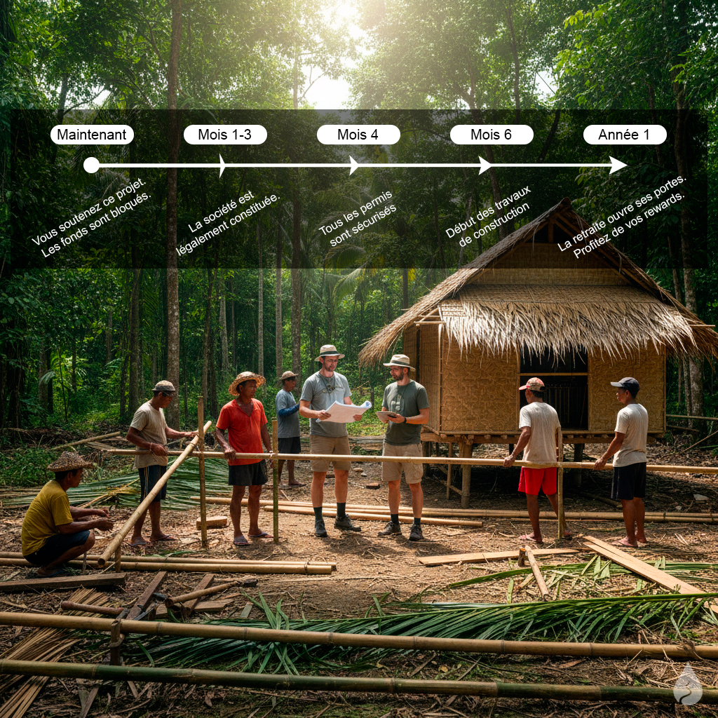 Transparence totale et sécurité des actifs : Pourquoi notre investissement participatif dans le Siquijor Retreat est-il plus sûr qu’une réservation classique ? Tout d’abord, nous sommes déjà propriétaires du terrain, avec un titre de propriété vérifié. Nous n’avons aucun risque lié à un bail ou à une dette hypothécaire. De plus, nous vous fournissons des photos mensuelles de l’avancement des travaux. Concrètement, nous garantissons une ouverture partielle d’ici décembre 2026. Si nous n’atteignons pas notre objectif de financement, nous poursuivrons la construction avec les fonds disponibles. Enfin, vous pouvez visiter notre site à tout moment. Nous croyons fermement en la transparence totale envers nos membres fondateurs.