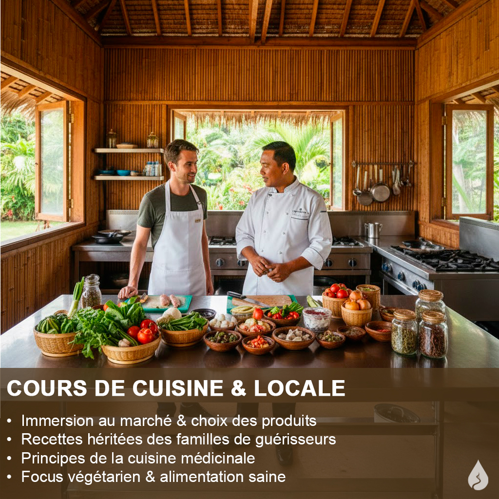 Votre transformation commence par une marche sacrée de 10 minutes à travers la jungle. Aucun véhicule ne peut accéder à notre sanctuaire; ce seuil symbolique marque votre transition du chaos de la vie moderne à la paix d’une sagesse ancestrale. Chaque pas vous plonge plus profondément dans un monde où le temps ralentit, les téléphones se taisent et la guérison s’amorce.